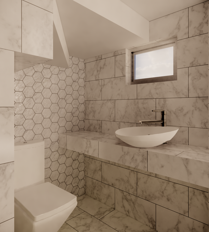 This is a one-storey with loft shotgun type house i saw online and decided to personally redesign for honing my skills. A 3m x 7m house that is redesigned to modern industrial in order to cut expenses by using concrete plaster and polyurethane finishes. Employing open under counter and using baskets for storage minimizes cost and instead, invest on bigger openings